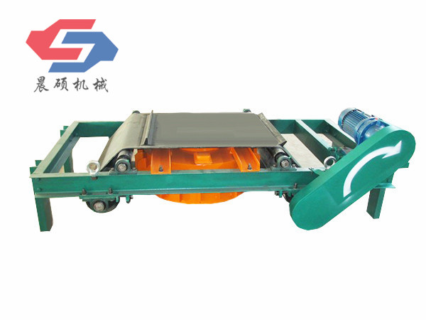 電磁除鐵器的基礎上增加了驅動電機、滾筒、帶刮板的缷鐵膠帶等組成的缷鐵機構。在工作過程